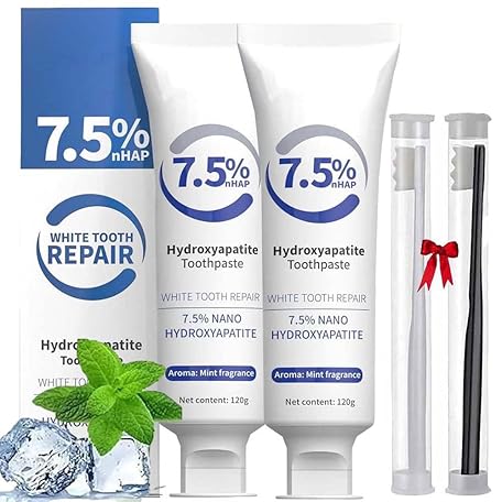 Hydroxyapatite Toothpaste, 7.5% Nano Hydroxyapatite Fluorine Free Formulated Whitening Teeth Strengthening Teeth Protection Enamel Gentle Mint Long Lasting Fresh Breath Sensitive Tooth Care (B-2, 2