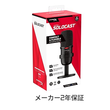 Sản phẩm HyperX SoloCast USB Stand-Alone Microphone for Telework/Streamer/Content Creator/Gamers / PC, PS4, PS5 Compatible, Manufacturer, HMIS1X-XX-BK/G (4P5P8AA) đang được bán với giá ưu đãi là $42.9678 tại nước Nhật.