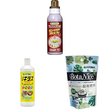 Hyponex Japan Liquid Fertilizer Stress Block 16.9 fl oz (500 ml) + Hyponex Japan Vitalizer Liquidus, 28.7 fl oz (800 ml) + Hyponex Japan Botanice, Just Put It On!