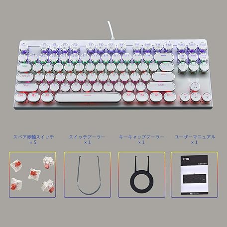 Sản phẩm IETSメカニカル式ゲーミングキーボード 赤軸アンチゴーストキー レインボーLEDバックライト付き パンクレトロなキーキャップを採用 US英語配列87キー 取り外し可能なキースイッチ 防水LOLゲーム専用キーボード(赤軸ーホワイト) đang được bán với giá ưu đãi là $37.8775 tại nước Nhật.