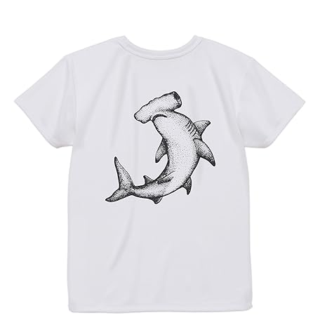 igsticker 032231 Dry T-shirt, Women's, Back Print, Medium, White, Gym, Training, Sports, UV Protection, Absorbent, Quick Drying, 4.1 oz, Sea, Shark, Shark, 032231