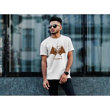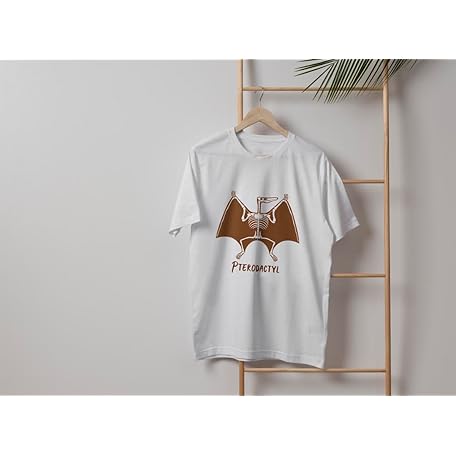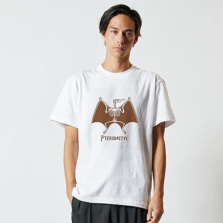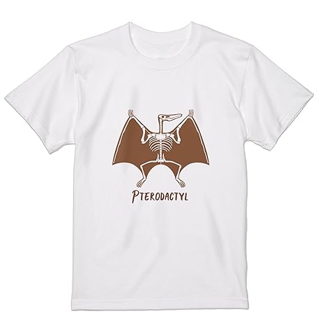 • [igsticker] Tシャツ メンズ 半袖 ホワイト デザイン クルーネック 白 035604 プテラノドン 模型 骨 化石