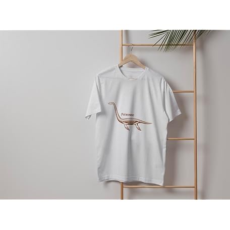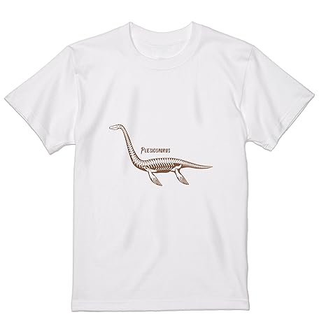 • [igsticker] Tシャツ メンズ 半袖 ホワイト デザイン クルーネック 白 035607 プレシオサウルス 模型 骨 化石