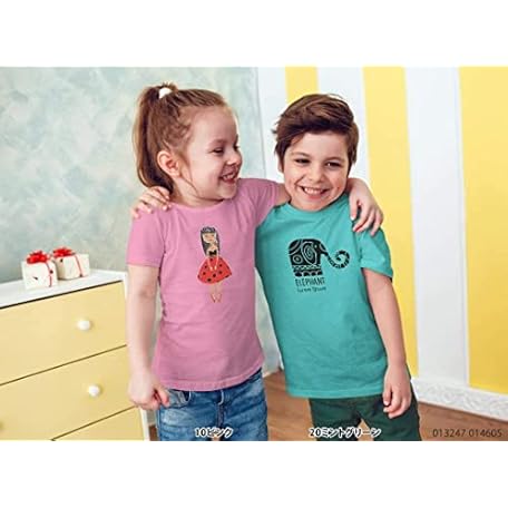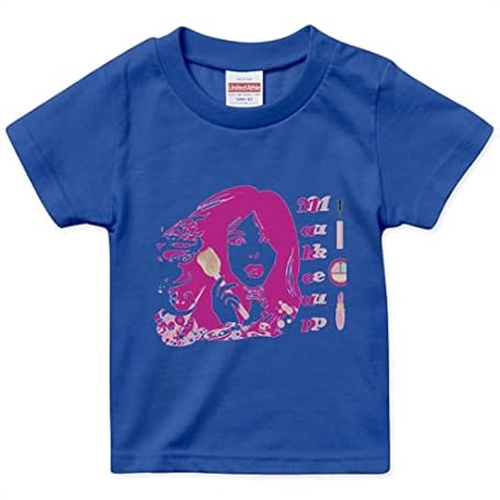 [igsticker] Tシャツ キッズ 子供 100 サイズ size デザイン プリント クルーネック 青色 ロイヤルブルー t-shirt 013589 顔 女性 メイク