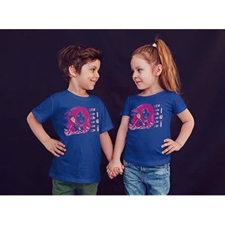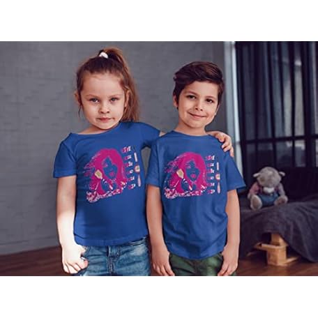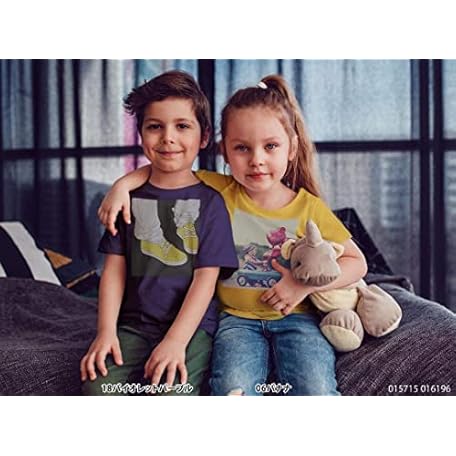 • [igsticker] Tシャツ キッズ 子供 100 サイズ size デザイン プリント クルーネック 青色 ロイヤルブルー t-shirt 013589 顔 女性 メイク