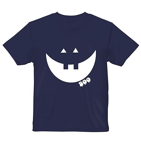 • [igsticker] ドライTシャツ キッズ 吸水 速乾 DRY 選べる18カラー 4サイズ キッズ 半袖 デザインドライTシャツ スポーツ ゆったり シルエット 150サイズ ネイビー 017454 顔 かぼちゃ パンプキン