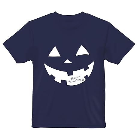 • [igsticker] ドライTシャツ キッズ 吸水 速乾 DRY 選べる18カラー 4サイズ キッズ 半袖 デザインドライTシャツ スポーツ ゆったり シルエット 160サイズ ネイビー 017433 顔 かぼちゃ パンプキン