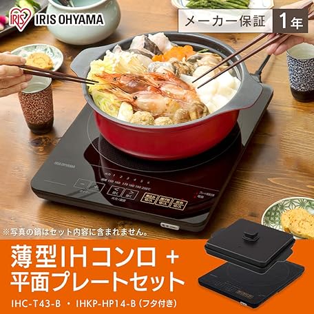 IHKP-HP14-B IHC-T43-B IHC-T43-B + IH Dedicated Flat Plate IHK-T37 (1400W) Compatible with Tabletop, 1400W, Thin, Timer Function, Magnetic Plug Type, Black
