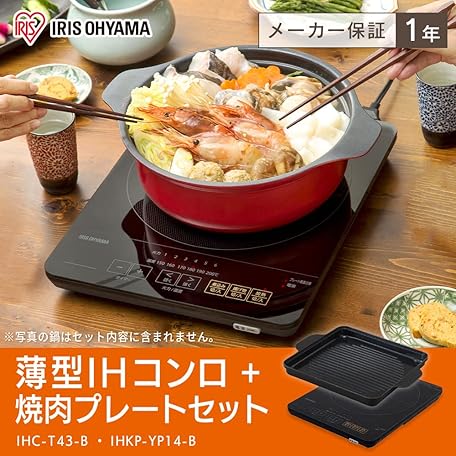 Thông tin sản phẩm IHKP-YP14-B IHC-T43-B IHC-T43-B + IH Dedicated Yakiniku Plate IHK-T37 (1400W) Compatible with Tabletop, 1400W, Thin, Timer Function, Magnetic Plug Type, Black