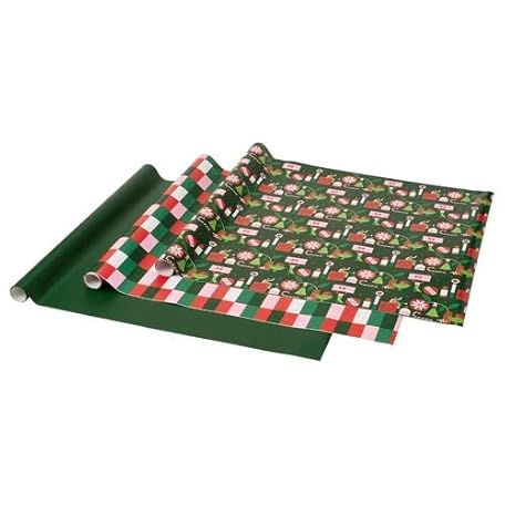Ikea M50602975 VINTERFINT Gift Wrapping Paper, Mixed Patterns, Green/Red, 9.8 x 2.2 ft (3 x 0.7 m), Set of 3
