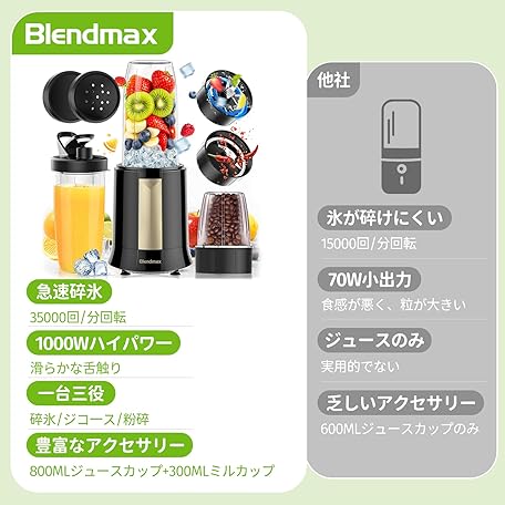 Thông tin sản phẩm (Industry Evolution Version) Blender Juicer, 1000 W, High Power, Coffee Grinder, Multi-Purpose, Crushing Ice, 28.3 fl oz (800 ml) & 300 ml Bottle, Mill Blender, Portable, Bottle Mixer, Smoothie Mixer