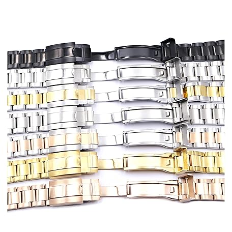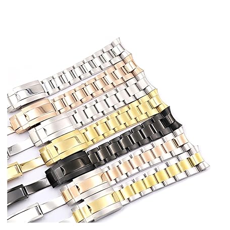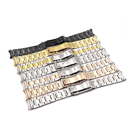 [INEOUT] 20mm Middle Gold Solid Watch Band Curved End Screw Link Clasp Steel Bracelet Compatible with Rolex Oyster