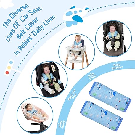 • INFANZIA 幼児用カーシートストラップカバー、子供用ソフトカーシートショルダーパッド、ベビーカー、ベビーカー、ベビーカー、ハイチェア用両面使用シートベルトクッションカバー(ブルー)