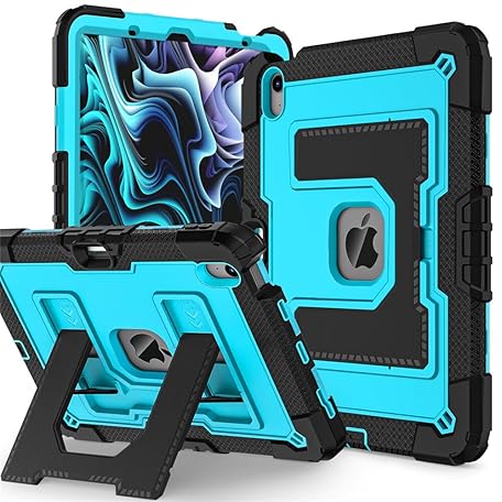 • ジェネリック iPad Air 11インチ (M3) 2025年モデル対応 (カラー: ブラック プラス ブルー) ハードバック ハード シリコン フリップ フルケース ショルダーストラップ付き