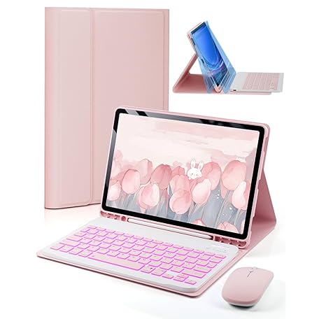 iPad Air 11インチ/第5世代/第4世代用ケース キーボード付き iPad Air 10.9/11インチ M3 M2 Air 5 Air 4 Gen 2025/2024/2022/2020 マジックキーボード バックライト付き マウス付きペンシルホルダー内蔵 - ピンク
