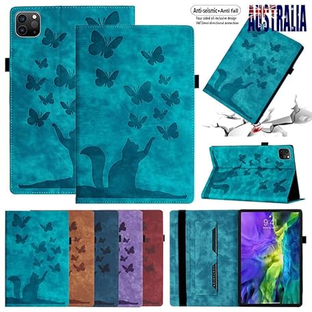 • ジェネリック iPad Air 13インチ ch (M3) 2025 (カラー: パープル) レザーキャットバタフライパターン フリップバックケース