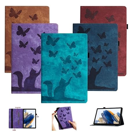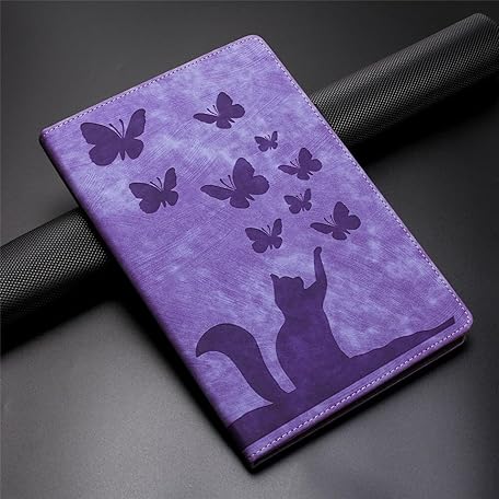 ジェネリック iPad Air 13インチ ch (M3) 2025 (カラー: パープル) レザーキャットバタフライパターン フリップバックケース