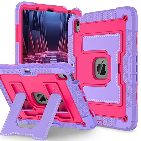 • ジェネリック iPad Air 第4世代 10.9 2020年モデル対応 (カラー:パープルプラスホットピンク) ハードバックハードシリコンフリップフルケース ショルダーストラップ付き