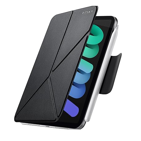 iPad Mini 7 Case, PITAKA for A17 Pro (2024) for iPad Mini 7 (2024) / iPad Mini 6 (2021) Portrait Landscape Magnetic Case with Pencil Holder 4 Stand Angles - Black