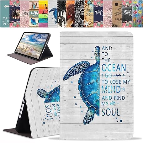 iPad Pro 11インチ (第4世代、第3世代、第2世代) 2022/2021/2020用ケース 素朴な木製ボードに青いウミガメが描かれた面白い言葉 スリムなPUレザーカバー スタンド&自動ウェイク/スリープ機能付き iPad Air 5 2022/Air 4 2020 10.9インチ用