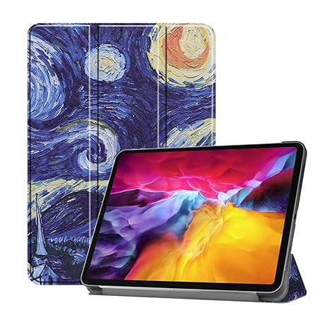 iPad Pro 11 inch (1st /2/3/4th generation, 2018/20/21/22) iPad Air 4/5 dual-purpose Flip Horizontal Opening PU/Hard Type Trifold Stand Case Cover Van Gogh Motif Starry Night Landscape