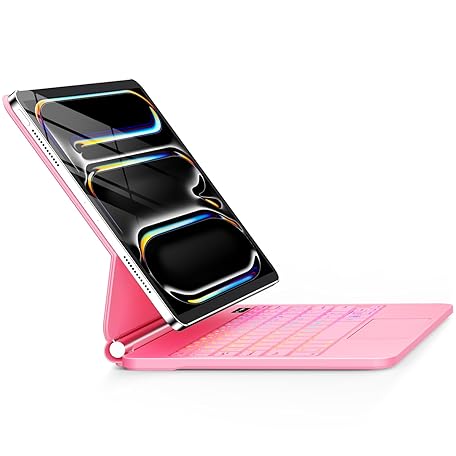 iPad Pro 13インチ用ケース キーボード付き (M4, 2024) マジックスタイル マグネット - 7色バックライト - フローティングカンチレバースタンド - マルチタッチ トラックパッド キーボードケース iPad Pro 13用 (ピンク)