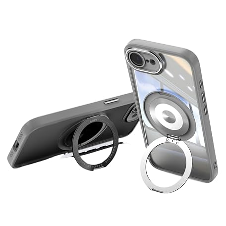 iPhone 16E Case, MagSafe Compatible, Ring Included, Ring 360° Rotation Stand Function, Both Vertical and Horizontal, Transparent, Anti-Yellowing, Wireless Charging, iPhone 16E Smartphone Case, Lens