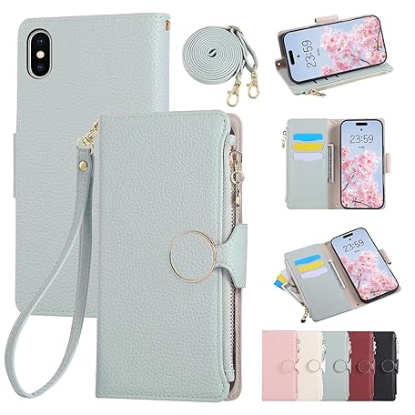 iPhone XS Max Case, Notebook Type, Shoulder Wallet-type Cover, Smartphone XS Max Case, Stylish, Zipper-type, Coin Purse, Card Storage, Includes Wrist/Shoulder Strap, Magnetic, Stand Function