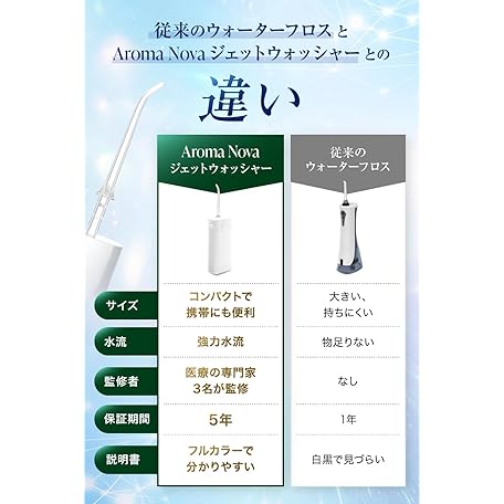 Thương hiệu アロマノヴァ(AromaNova) là cái tên nổi tiếng được rất nhiều khách hàng trên thế giới chọn lựa. Với kiểu dáng đẹp mắt, sang trọng, sản phẩm 【歯科医・衛生士・医師 監修 】 口腔洗浄器 ジェットウォッシャー IPX7防水【日本企業】携帯用 (200ml 白) là sự lựa chọn hoàn hảo nếu bạn đang tìm mua một món cho riêng mình.