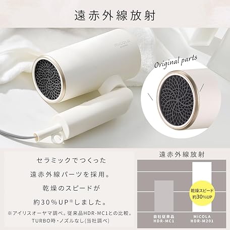 Thông tin sản phẩm Iris Ohyama HDR-M201-H MiCOLA Dryer, Equipped with Far Infrared, Quick Drying, Damage Reduction, High Airflow, Ion Dryer Attachment, Dark Gray