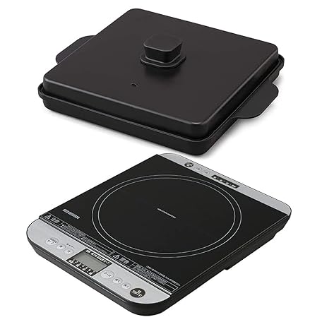 Thông tin sản phẩm Iris Ohyama IHC-T61-B Induction Cooking Heater With Liquid Crystal, 1400 W, Double-side Operation Panel, Tabletop IH Burner, 7 Level Heat Settings, Black + IHKP-HP14-B Black Compatible With IHK-T37 (1400 W) Flat Plate for Induction Heat, Set Purchase