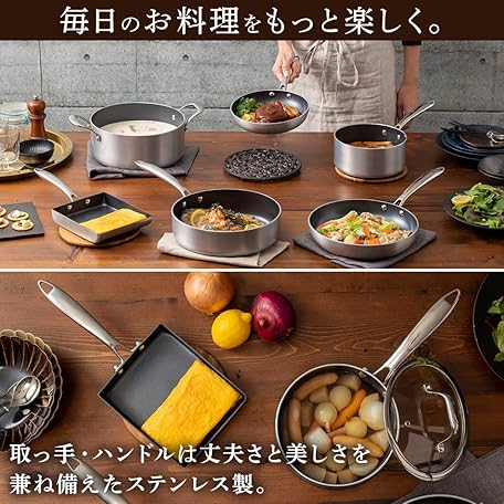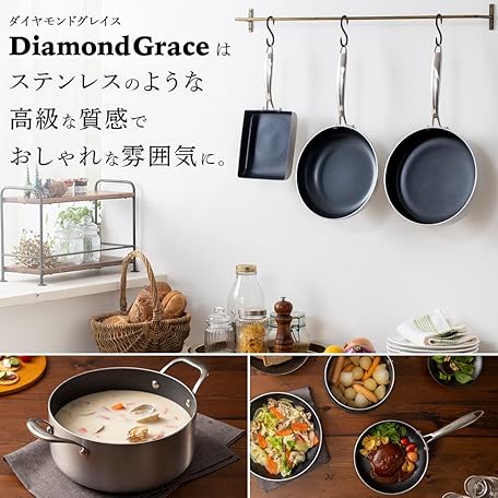 Thông tin sản phẩm Iris Ohyama Kitchen Chef Diamond Grace DG-SE10 Pots & Pans 10-Piece Set, IH & Gas Stove Compatible, Easy to Use, Color: Silver, Sizes: 7.9 / 10.2 Inches (20/26 cm)