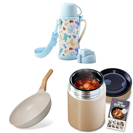 Iris Ohyama NTL-F26MO Water Bottle, 2-Way Bottle, 20.3 fl oz (600 ml), Mickey, Cold Retention, Vacuum Insulated, Stainless Steel, Shoulder Belt Included + Frying Pan, 10.2 inches (26 cm), For Both