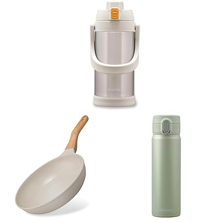 • Iris Ohyama NTL-F26MO Water Bottle, 6.6 fl oz (2 L) Ivory, Sports Bottle, Large Capacity, One-Touch Open & Direct Drinking, Frying Pan, 10.2 inches (26 cm), For Both Induction & Gas Fires, Natural