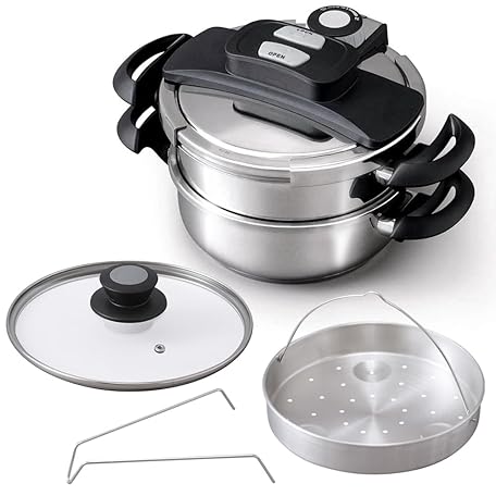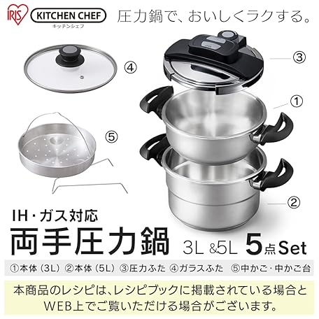 Thông tin sản phẩm Iris Ohyama RAN-SE5 Pressure Cooker, 3 L + 5 L Pot, Induction Compatible, 3 Layer Bottom, Switchable, Recipe Included, Two-Handed Pot, One-Touch Opening, 2-Level Switching, Safety Lock Function,