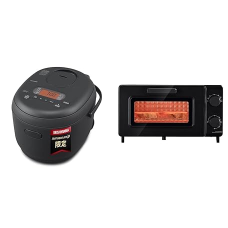 Iris Ohyama RC-MDA50AZ Rice Cooker, 5.5 Cups, Live Alone, Mic-operated, Can Sip and Ferment Cooking, Matte Black + Oven Toaster, 2 Panels, Stepless Temperature Adjustment, 1200 W, Tray Included, 30