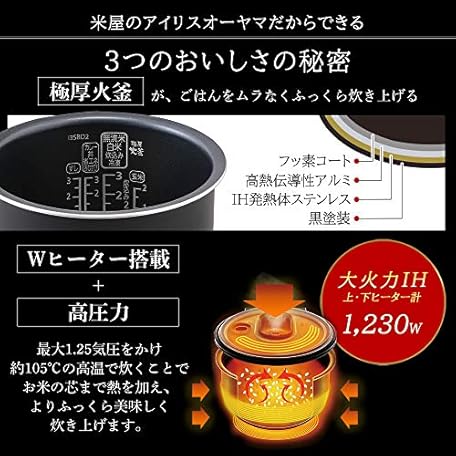 Thông tin sản phẩm Iris Ohyama RC-PD50-W Pressure Induction Rice Cooker, 5.5 Servings, Pressure IH System, 40-Option Cooking Function, Extra Thick Pot, White
