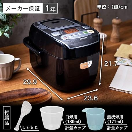 Thông tin sản phẩm Iris Ohyama Rice Cooker, 3 Cups, IH Type, Pressure IH System, Features 31 Rice Cooking Patterns, Extra Thick Pot, Black