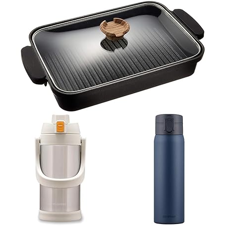 Iris Ohyama SKB-O500 Frying Pan, Grill Pan, IH, Oven Safe, Wide Size, 0.8 gal (2.9 L), 14.7 x 8.7 x 2.4 inches (37.2 x 22.3 x 6 cm), SKL-G + Water Bottle, 6 fl oz (2 L), Ivory, Sports Bottle, Direct