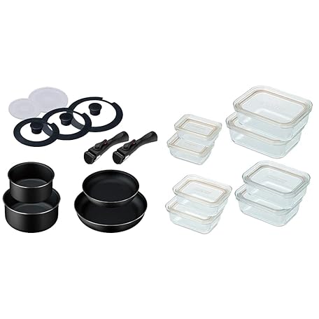 Thông tin sản phẩm Iris Ohyama TF-SE11 Frying Pan and Pot Set, 11-Piece Set, Black & TGS-8S Heat-Resistant Glass Container, Clear