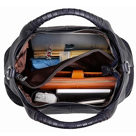 Thông tin sản phẩm Iswee Genuine Leather Shoulder Bag Handbag Women Top Handle Tote Satchel Women Hobo Crossbody Bag, Navy Blue, M, blue, M