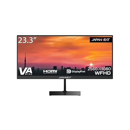 JAPANNEXT 23.3インチ モニター WFHD 2560x1080解像度 VA ディスプレイ (HDMI/DisplayPort/VESA対応/ブルーライトカット) JN-V233WFHD