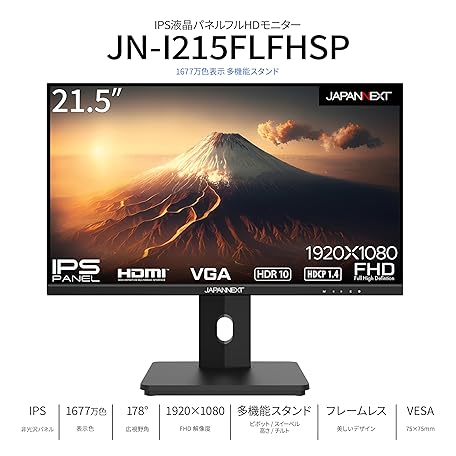 Sản phẩm JAPANNEXT 21.5インチ モニター フルHD 1920x1080解像度 IPS ディスプレイ (HDMI/スピーカー内蔵/高さ調節/回転(ピボット)機能/VESA対応/ブルーライトカット) JN-I215FLFHSP đang được bán với giá ưu đãi là $123.4752 tại nước Nhật.