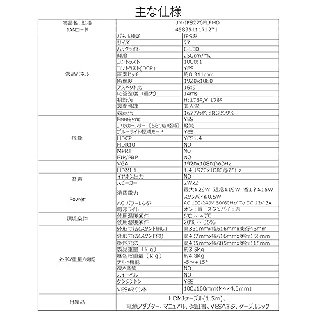 Sản phẩm JAPANNEXT JN-IPS270FLFHD HDMI VGA Full HD LCD Monitor with 27-inch IPS Panel đang được bán với giá ưu đãi là $139.5309 tại nước Nhật.