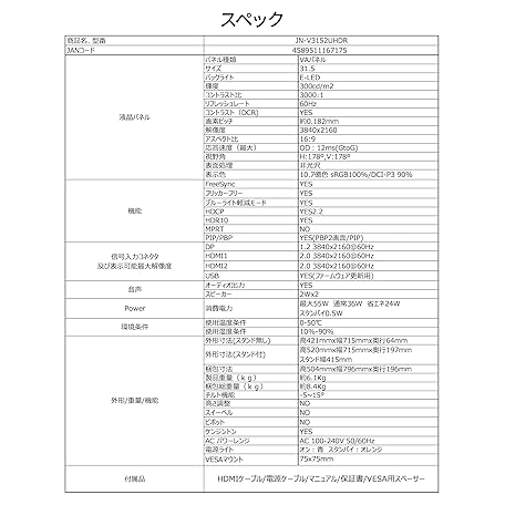 Sản phẩm JAPANNEXT JN-V3152UHDR HDMI DP HDR sRGB:100% DCI-P3:90% PBP/PIP Function with 31.5 inch VA Panel 4K (3840x2160) Resolution LCD Monitor đang được bán với giá ưu đãi là $261.164 tại nước Nhật.