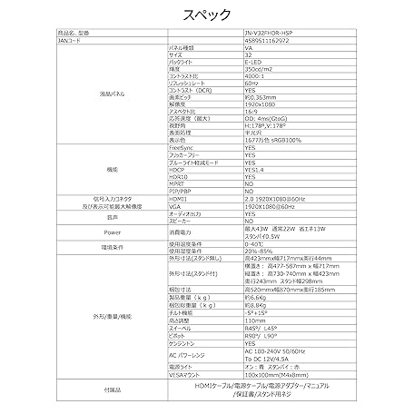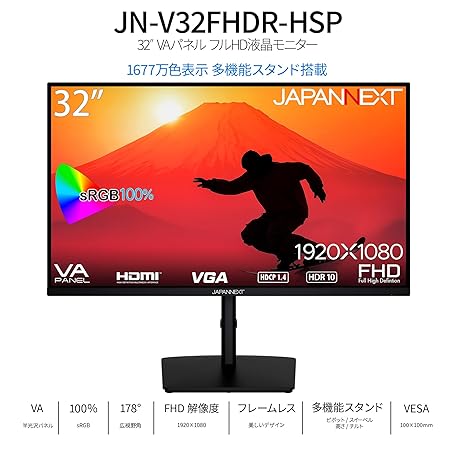 Thông tin sản phẩm JAPANNEXT JN-V32FHDR-HSP LCD Monitor with 32-inch VA Panel, Full HD (1920x1080) Resolution, HDMI VGA HDR, sRGB100% Height Adjustment, Pivot Function