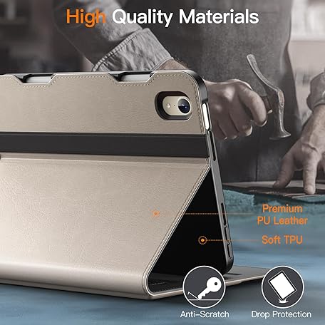JEDirect iPad Mini 6 Case (8.3 inch, 2021 Model 6th Generation) PU Leather Business Folio Protective Tablet Cover with Pencil Holder and Pocket for Multi-Angle Viewing (Starlight)