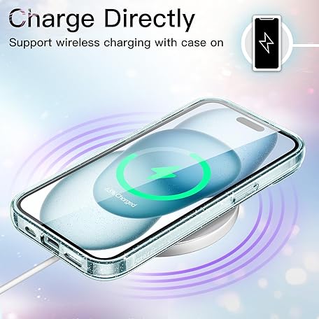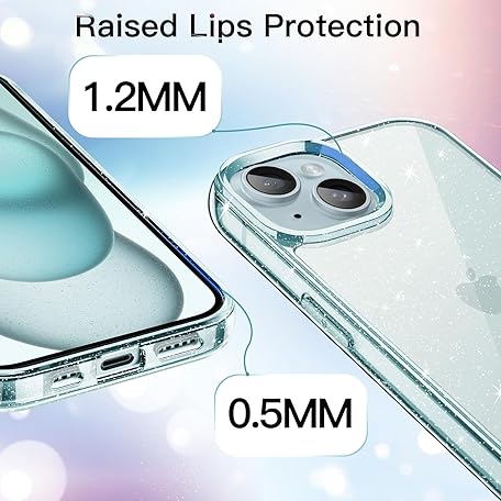 • JEDirect iPhone 15 (6.1 inch) Bling Bling Shock Absorbing Bumper Cover Cute Bling Bling for Women (Blue)