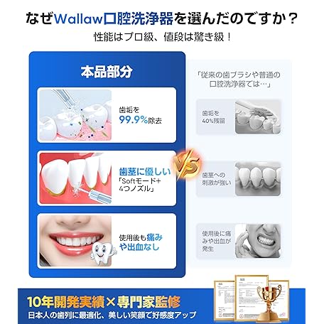 Thương hiệu wallaw là cái tên nổi tiếng được rất nhiều khách hàng trên thế giới chọn lựa. Với kiểu dáng đẹp mắt, sang trọng, sản phẩm Jet Washer, Pulse Water Flow, Dental Plaque Removal Rate, 99.9%, 4 Different Water Flow Modes, 4 Nozzles, 360° Rotation Design, Tongue Cleaner, Toothbrush, 11.8 fl oz (350 ml) Large Capacity Tank là sự lựa chọn hoàn hảo nếu bạn đang tìm mua một món cho riêng mình.