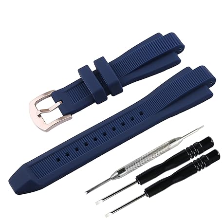 • JETHENG ラバー交換用腕時計バンド 幅13x29mm Michael Kors MK8295 MK8356 MK8380 MK9020用 ブラック (ダークブルー/シルバーバックル)